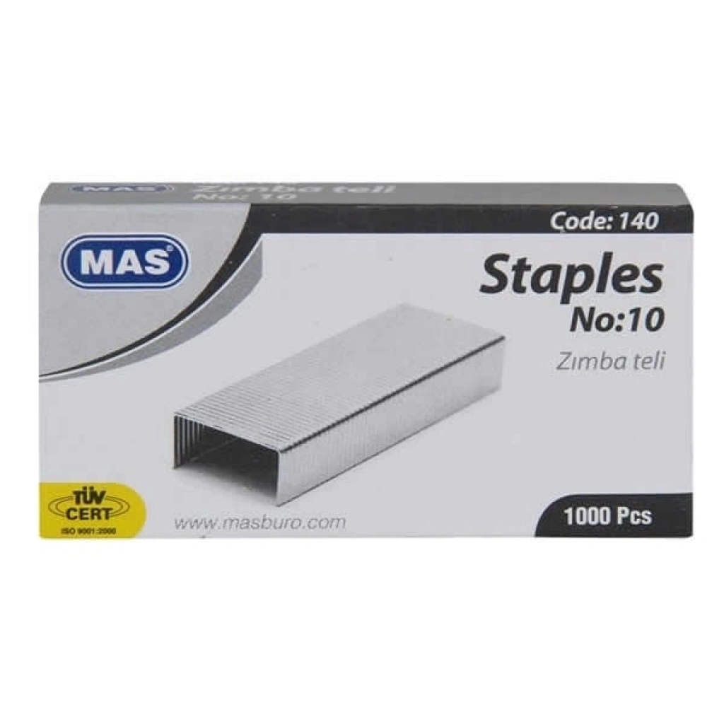 Mas 140 No:10 Beyaz Zımba Teli, galvaniz kaplaması sayesinde paslanmaya karşı dirençlidir ve metalik gümüş renge sahiptir. Karton kutuda 1000 adet 10 numara zımba telinden oluşur. Paslanmaya dirençli yapıdaki bu zımba telleri, esneme ve kırılma yapmayan dayanıklı forma sahiptirler. Keskinleştirilmiş uçlar sayesinde kâğıda daha rahat geçer ve bu da tek seferde daha fazla kâğıt zımbalamaya olanak tanır. 80gr/m² özelliklerinde 10 sayfaya kadar zımbalama kapasitesi bulunur. Keskin yüzeyler içerdiğinden çocuklardan uzak tutulması gereken bu ürün, ev, okul, ofis kullanımına uygundur. Tüm çalışma alanlarında daha uzun süreli sabitleme sunan bu zımba telleri, hobi ve sanatsal faaliyetler için de tercih edilebilir. Ayrıca zımba makinelerinizin sağlıklı çalışmasına yardımcı olduğu için ekonomik açıdan size uzun vadede oldukça fayda sağlar. Evraklarınızın daha nitelikli dosyalanmasına ve arşivlenmesine olanak tanıyan ve 40 yılı aşan MAS kalite, tecrübe ve güvencesiyle sizlere sunulan Mas 140 No:10 Beyaz Zımba Teli, fiyatı ve uzun süreli kullanım ömrüyle de ön plana çıkan bir ürün.