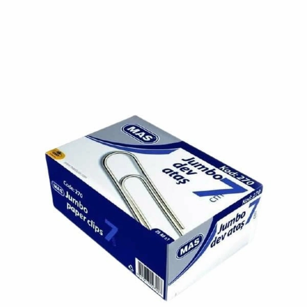 Mas 270 Süper Kalite Jumbo Tipi Dev Ataş, 25’li küçük karton kutusunda sunulur. 70 mm uzunluğa sahip oval köşeli bu ataşlar nikel gövdeye sahiptir korozyona karşı oldukça dirençlidir. Maksimum sayıda evrak kapasitesi sunabilen bu ataşlar ofislerinize ve çalışma alanlarınıza getirdiği düzenin yanı sıra, sağlam yapısıyla size uzun süreler hizmet edebilir. Paslanma ve deformasyona dirençli yapıdaki bu ürünler, sağlığa zararlı kimyasallar içermeyen yapısıyla her yaştan bireyin kullanımına da uygundur. Ev, ofis, okul, tüm resmi ve özel kurumlar için ideal Mas 270 Süper Kalite Jumbo Tipi Dev Ataş, fiyatı ve geniş kullanım alanıyla ön plana çıkan bir ürün.